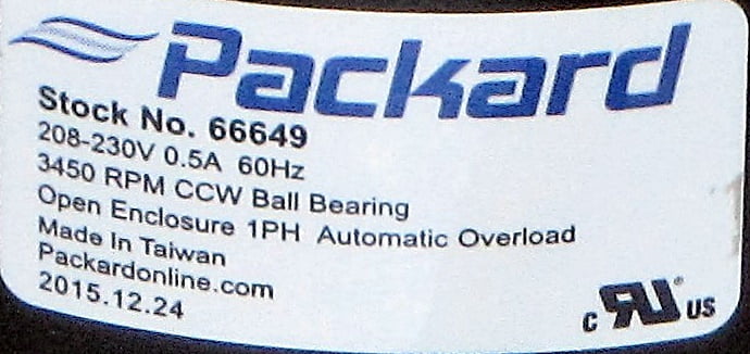 Packard 66649 Blower Motor Hp 1 16 Volts 208 230 Amps 50